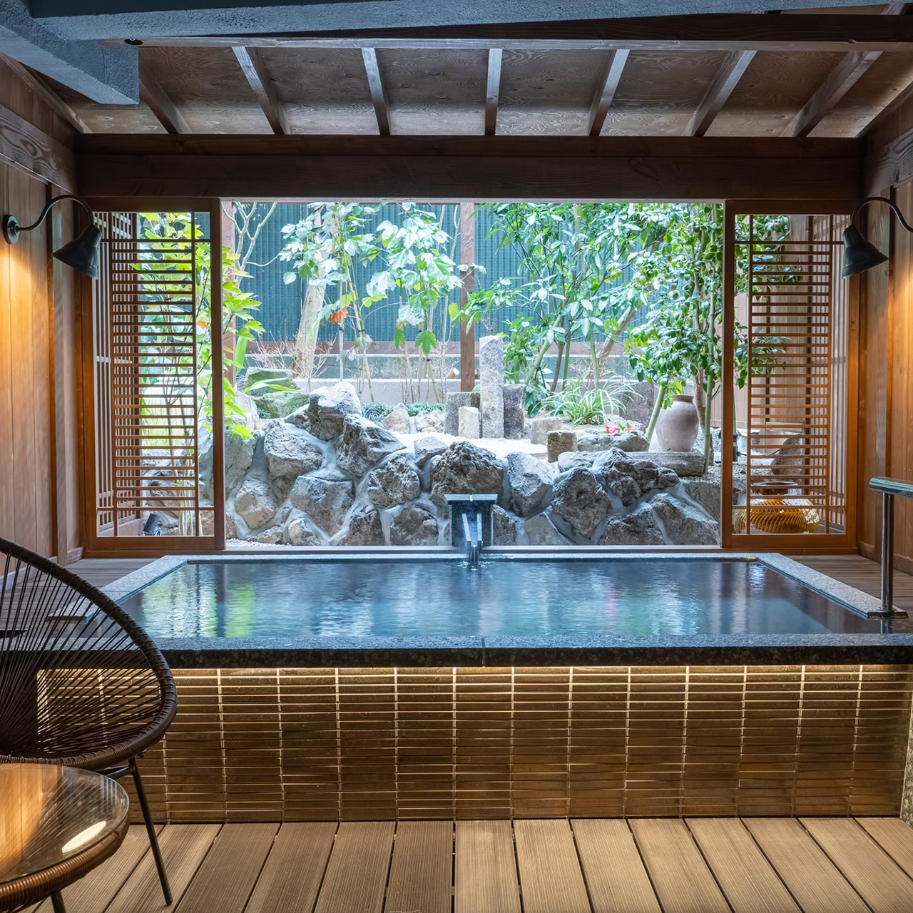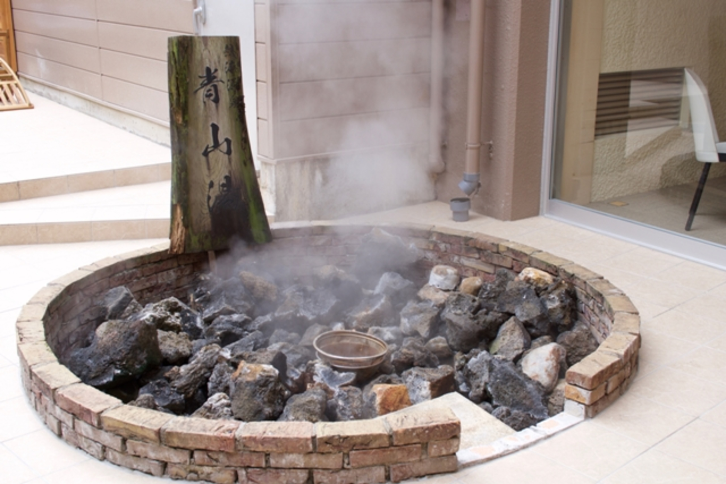 1階中庭のテラスに御座いますのは、源泉「青山湯」