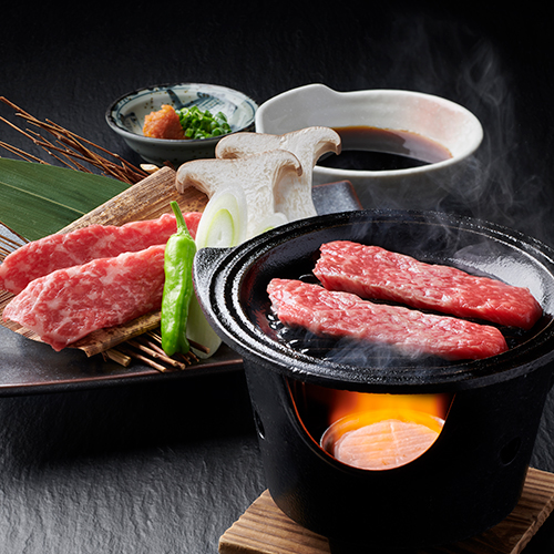 国産和牛の鉄板焼・天婦羅盛・金目鯛・御刺身・釜飯等、当館最上ランクになります。