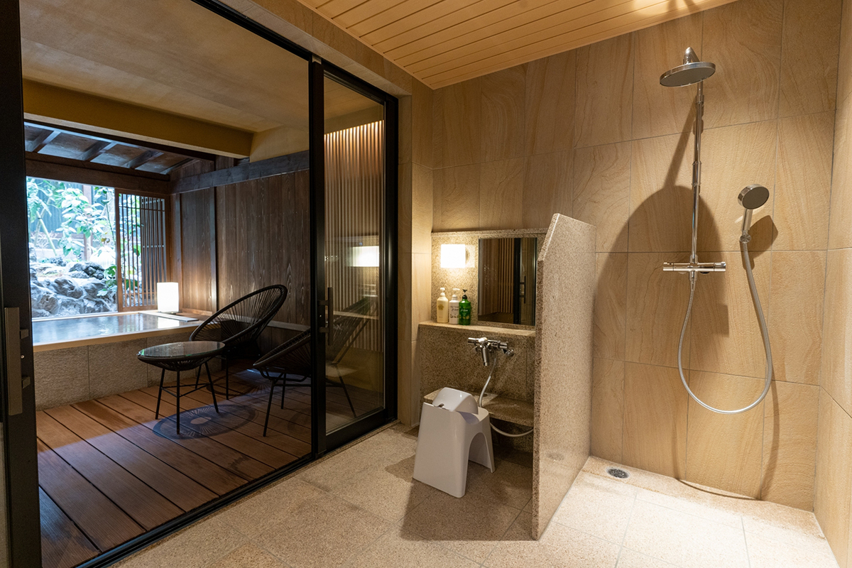 洗練された、純和風な佇まいの夢の湯。プライベートな空間で、気兼ねなくお過ごしください。